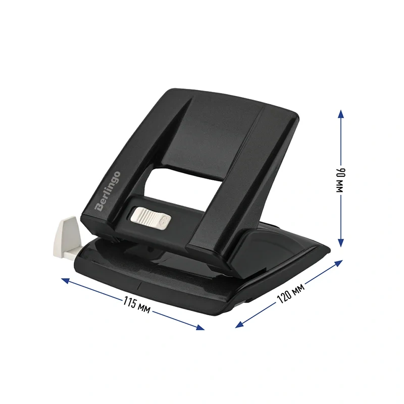 Встроенный фиксатор обеспечивает компактное хранение дырокола.