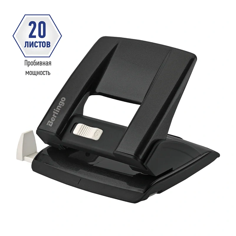 Цельнометаллический дырокол Berlingo 'Power TX' выполнен в стильном черном цвете. Прекрасно подходит для ежедневного использования. Пробивает до 20 листов.