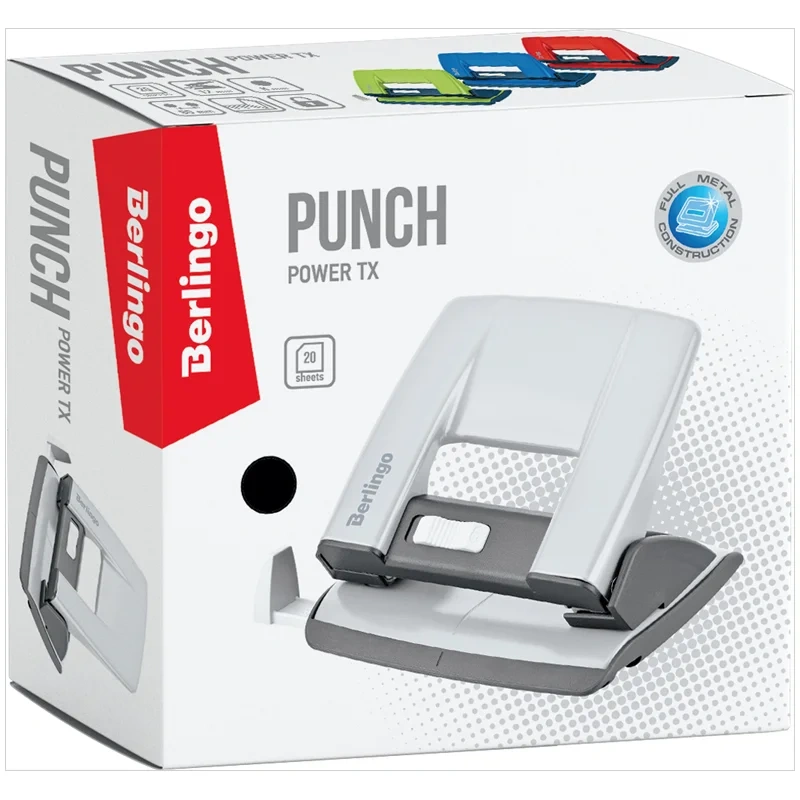 Цельнометаллический дырокол Berlingo 'Power TX' выполнен в ярких модных цветах. Прекрасно подходит для ежедневного использования. Пробивает до 20 листов.