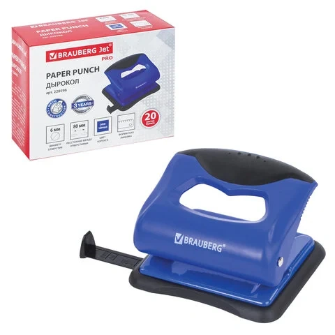 Дырокол BRAUBERG 'JET PRO', до 20 листов, сине-черный, 228598