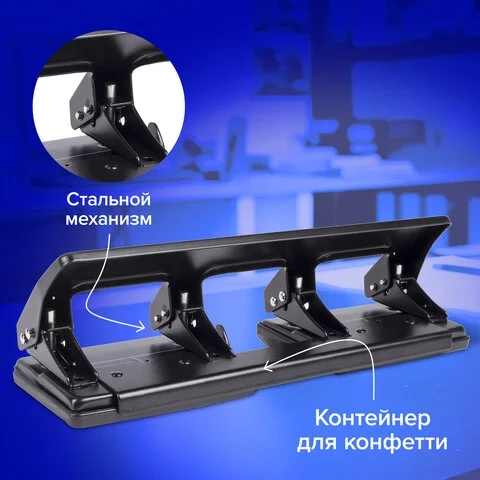 Полностью металлический дырокол BRAUBERG 'HL-4' пробивает до 15 листов бумаги. Благодаря качественным пробойникам обеспечивает легкое и точное пробивание бумаги. Количество пробиваемых отверстий - 4, диаметр каждого - 6 мм, расстояние между отверстиями - 8 см. Метка центрирования поможет ровно разместить листы, а ограничительная линейка - пробить отверстия в нужных местах. Оснащен контейнером для сбора мусора и блокиратором для компактного хранения.
