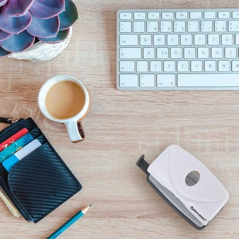 Дырокол эргономичного дизайна с качественными пробойниками обеспечивает легкое и точное пробивание бумаги.