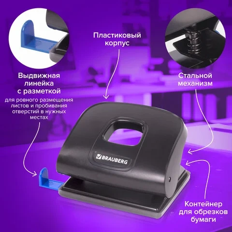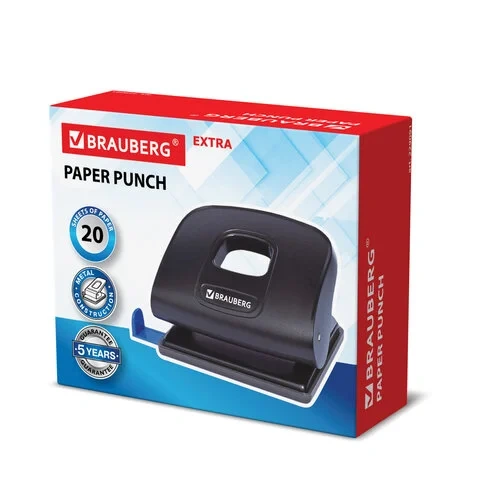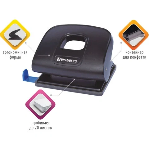 Дырокол BRAUBERG 'Super', до 20 листов, черный, 229091