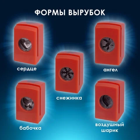 В набор входят 5 насадок с различными вырубками: сердечко, ангел, бабочка, снежинка, воздушный шарик. Вырубки можно использовать совместно для создания других интересных рисунков. Подробная инструкция размещена на обратной стороне упаковки.