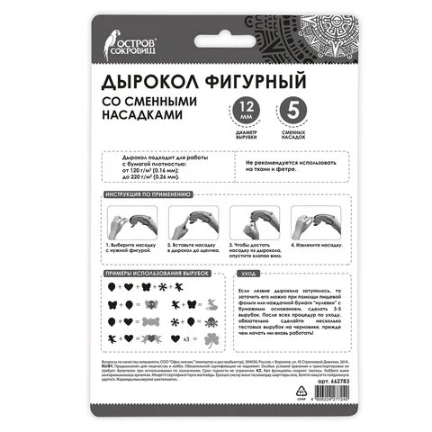Дырокол фигурный, со сменными насадками, 5 штук, ОСТРОВ СОКРОВИЩ, 662783