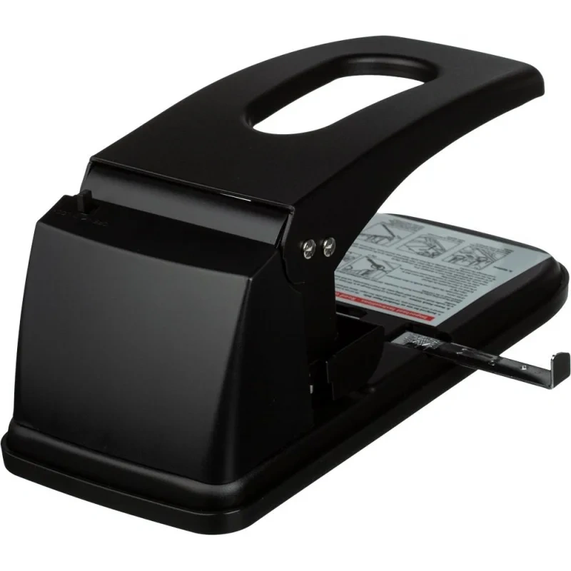 Мощный дырокол KW-trio 938на 2отверстия. Одновременно пробивает до100 листов плотностью 80г/м2. Стальная конструкция свыдвижной форматной линейкой. Фиксатор для хранения дырокола взакрытом состоянии. Возможность замены ножей идисков (арт.836244). Внимание! Перед применением внимательно ознакомьтесь с инструкцией по эксплуатации. Инструкция располагается на коробке степлера или вложена в нее. Также инструкция доступна для скачивания. Для этого нажмите на стрелку под описанием. Имеет метку центрирования. Для эффективного пробивания максимально допустимого объема бумаги необходимо расположить дырокол на горизонтальной твердой поверхности, прикладывая усилия, плавно надавить на рычаг (при необходимости двумя руками), разномерно распределяя усилия по поверхности рычага.