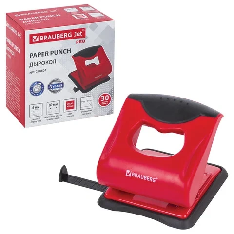 Дырокол Brauberg Rondo до 30 листов, ассорти (синий/черный)