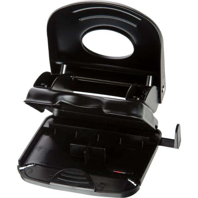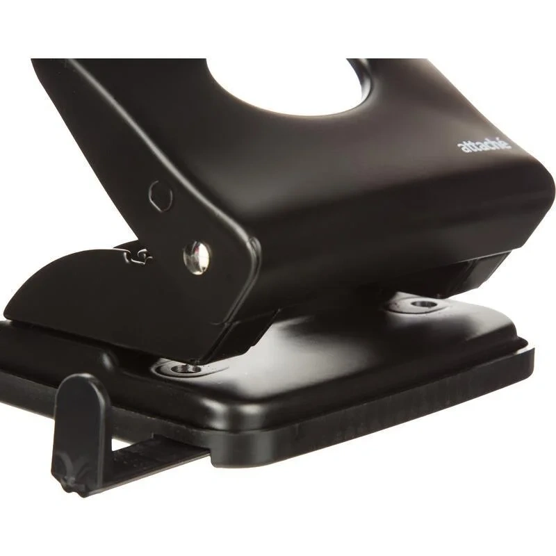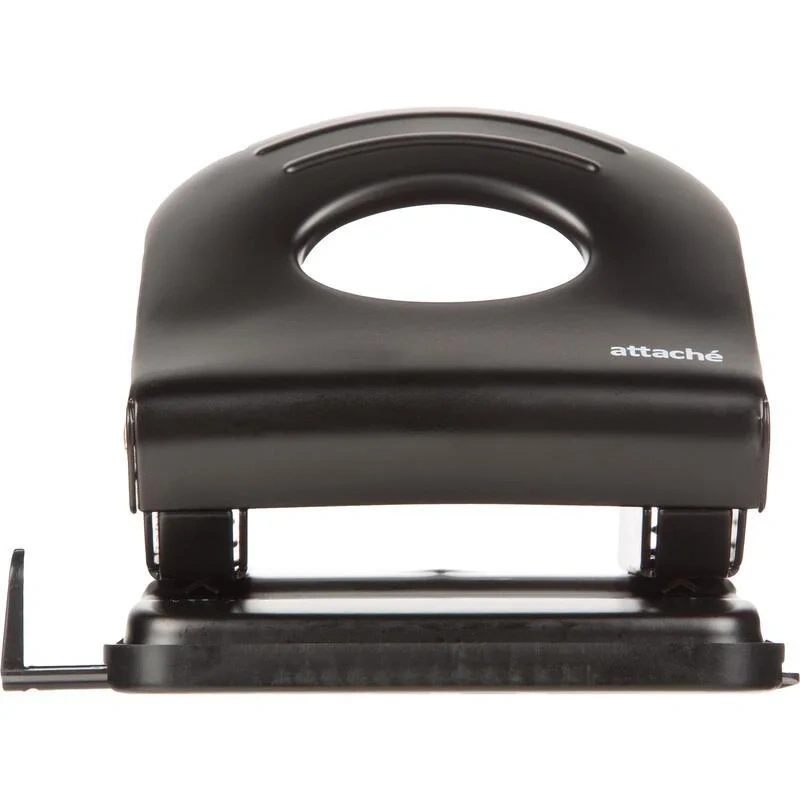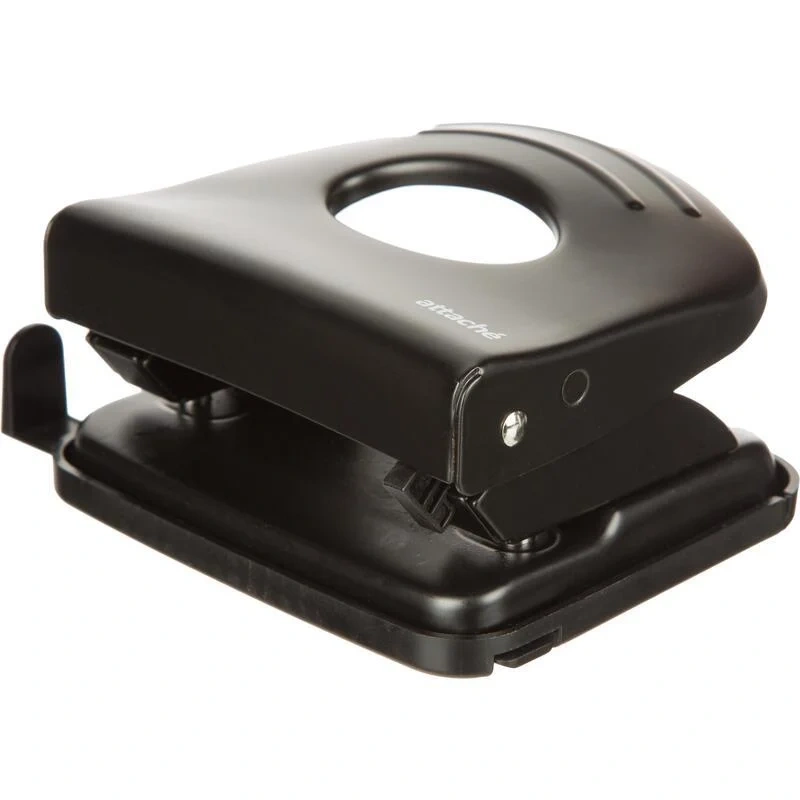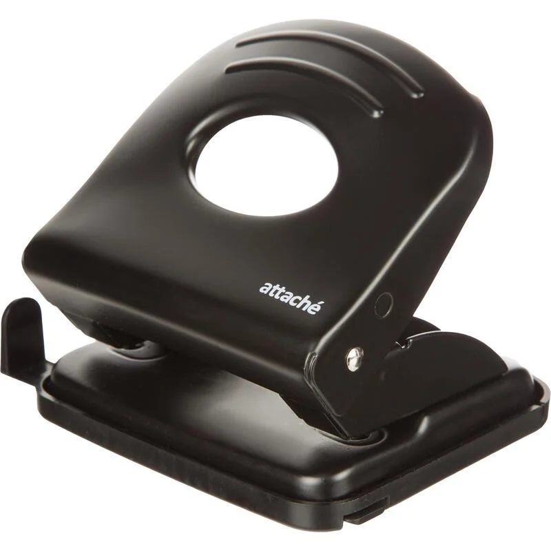 Дырокол Attache (Attache Economy) предназначен для перфорации бумажных носителей. Он позволяет сделать отверстия в документах и подшить их в папку с двумя и четырьмя кольцами или в скоросшиватель. Лаконичный дизайн и универсальный черный цвет корпуса подойдут для любого рабочего стола. Корпус дырокола выполнен из металла и пластика. Работает с документами толщиной до 30 листов плотностью 80 г/кв.м. Дырокол пробивает два отверстия диаметром 6 мм, расстояние между отверстиями — 80 мм. Пробойники дырокола изготовлены из металла, что позволит им без сложностей пробивать листы бумаги. Удобный контейнер для конфетти легко открывается и закрывается, исключая его рассыпание. Наличие линейки с делениями позволяет зафиксировать бумагу на нужном расстоянии и пробить отвестия в бумаге в соответствии с ее размером. Для эффективного пробивания максимально допустимого объема бумаги необходимо расположить дырокол на горизонтальной твердой поверхности, прикладывая усилия, плавно надавить на рычаг (при необходимости двумя руками), разномерно распределяя усилия по поверхности рычага.