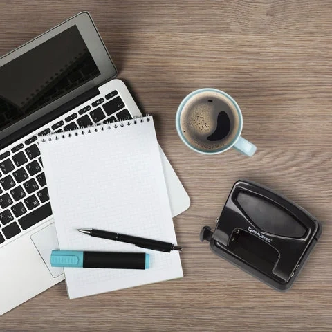 Способен пробить за один раз 35 листов бумаги. Стандартное количество пробиваемых отверстий - 2, диаметр каждого - 6 мм. Благодаря расстоянию между отверстиями в 8 см проколотые дыроколом листы могут храниться в папке идеально ровно и не мяться. Когда будет завершен отчетный период, они обычно сшиваются ниткой и снимаются с металлических колец. Метка центрирования поможет ровно разместить листы. Наличие ограничительной линейки позволяет пробить отверстия в нужном месте, что делает возможным сложить документы в папку ровной стопкой. Дырокол оснащен блокиратором для компактного хранения. Основная задача контейнера для конфетти состоит в сборе мусора, благодаря чему не будет постоянно загрязняться рабочее пространство. Малые размеры делового аксессуара помогут с легкостью разместить на рабочем столе, а классический черный цвет отлично впишется в любой интерьер.