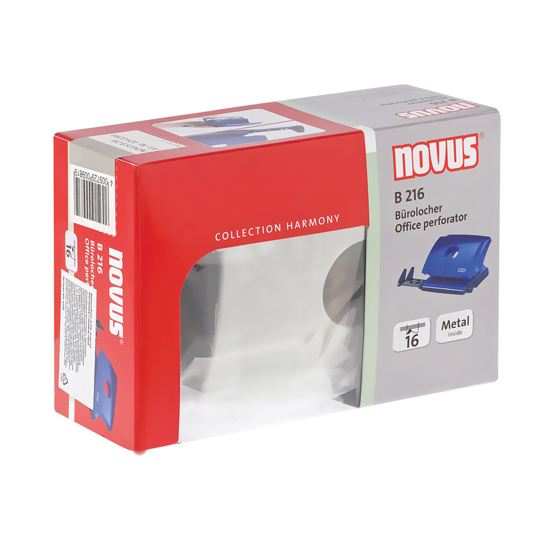 Дырокол Novus 'B 216' 16л., пластиковый, с линейкой, серый