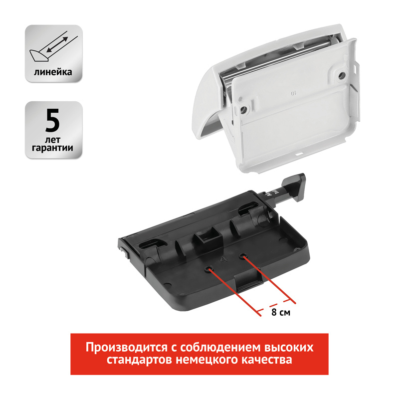 Удобный дырокол для использования в офисе и дома. Изготовлен из высококачественного пластика со съемным контейнером, предохраняющим поверхность стола от царапин. Имеет выдвижную линейку с хорошо читаемой шкалой форматов и надежной фиксацией упора. Расстояние между отверстиями 80мм, диаметр отверстий 5,5мм.