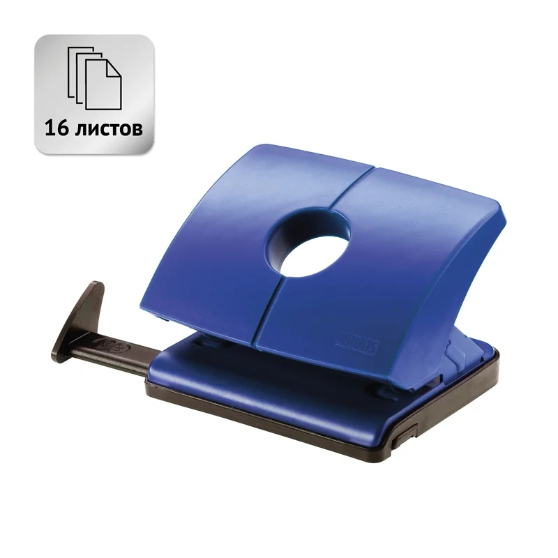 Дырокол Novus 'B 216' 16л., пластиковый, с линейкой, синий