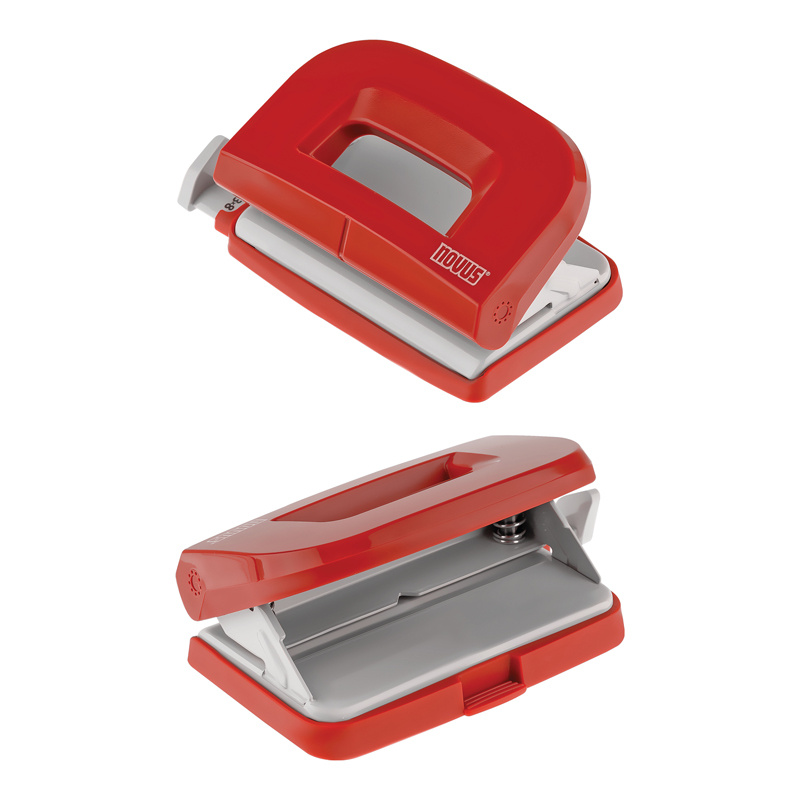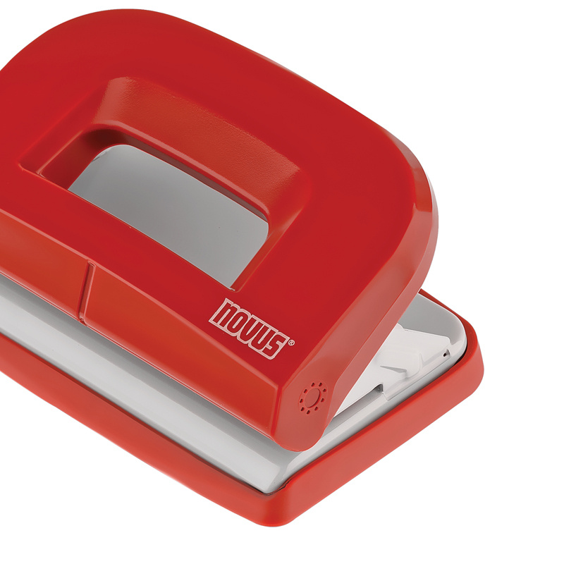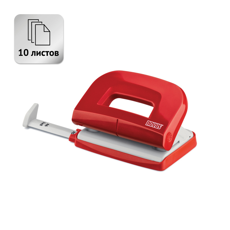 Дырокол Novus 'E 210' 10л., пластиковый, с линейкой, красный блестящий