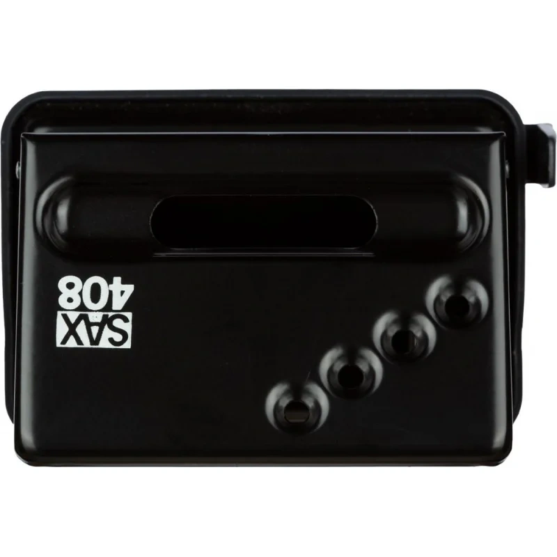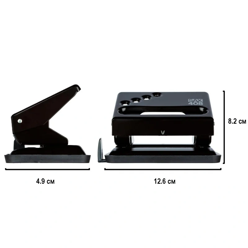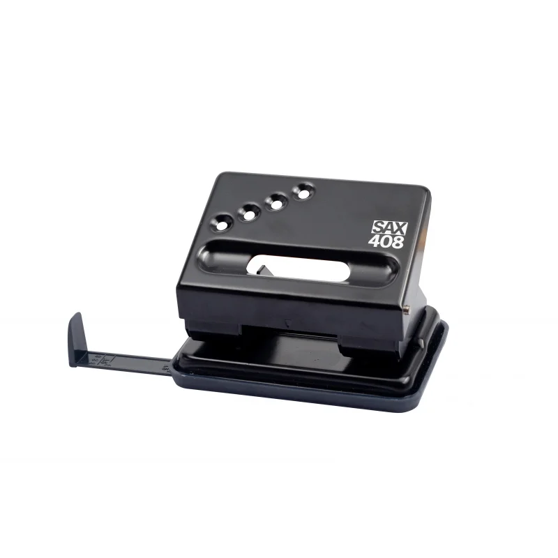 Дырокол Sax 408 работает с документами толщиной до 30 листов плотностью 80 г/кв.м. Пробивает два отверстия диаметром 5.5 мм, расстояние между отверстиями - 80 мм. Удобный контейнер легко открывается и закрывается, исключая рассыпание конфетти. Наличие линейки позволяет зафиксировать бумагу на нужном расстоянии. Дырокол выполнен в металлическом корпусе черного цвета. Имеет метку центрирования. Для эффективного пробивания максимально допустимого объема бумаги необходимо расположить дырокол на горизонтальной твердой поверхности, прикладывая усилия, плавно надавить на рычаг (при необходимости двумя руками), разномерно распределяя усилия по поверхности рычага.