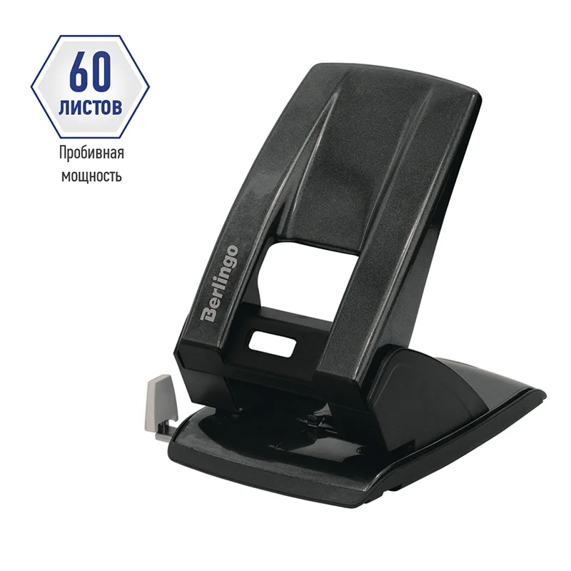 Дырокол Berlingo 'Power TX' 60л., металлический, с фиксатором и линейкой, черный