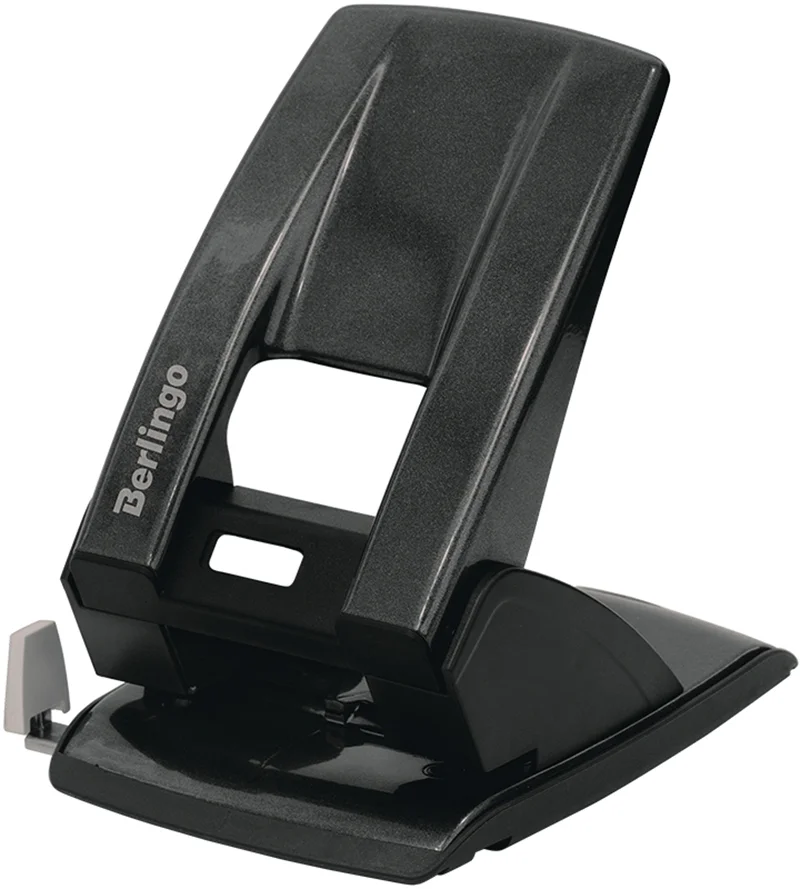 Дырокол Berlingo Office Soft до 30 листов, черный, пластиковый, с линейкой