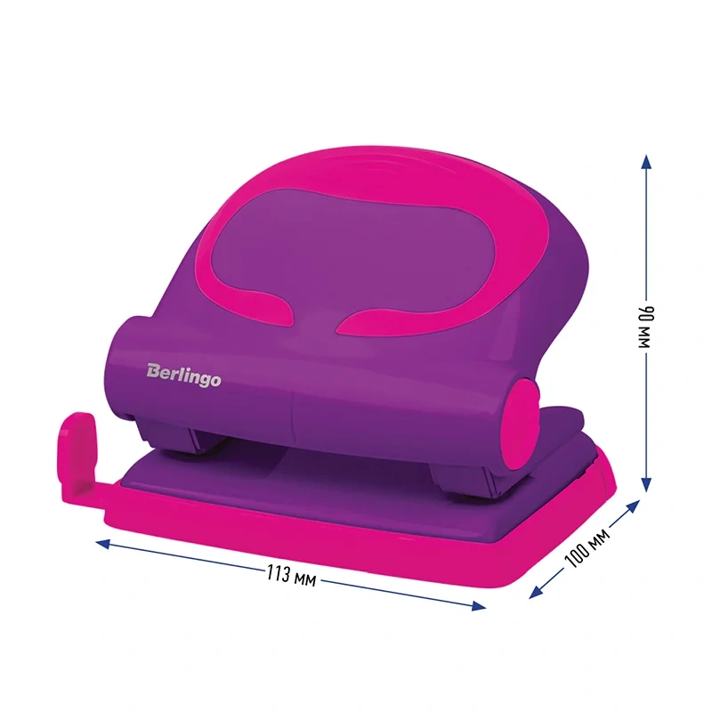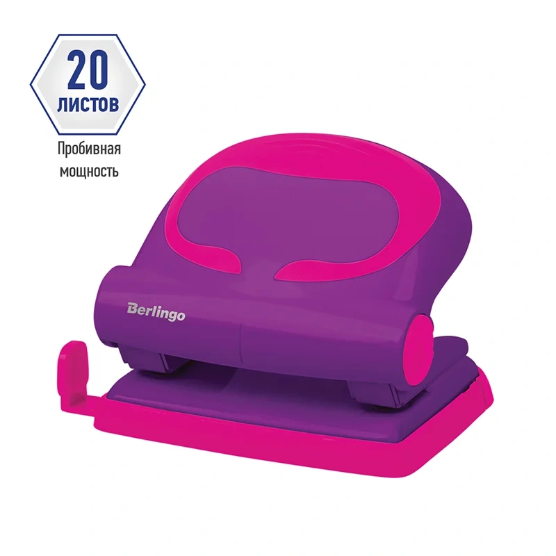 Дырокол Berlingo 'Fuze' 20л., пластиковый, фиолетовый, с линейкой
