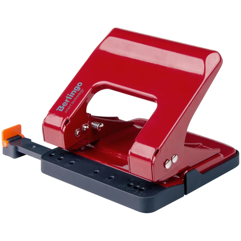 Дырокол энергосберегающий Berlingo 'Smart Technology' 25л., металлический, фиксатор, линейка, красны