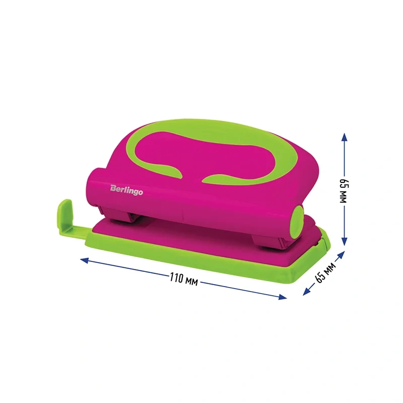 Дырокол Berlingo 'Fuze' 20л., пластиковый, розовый, с линейкой