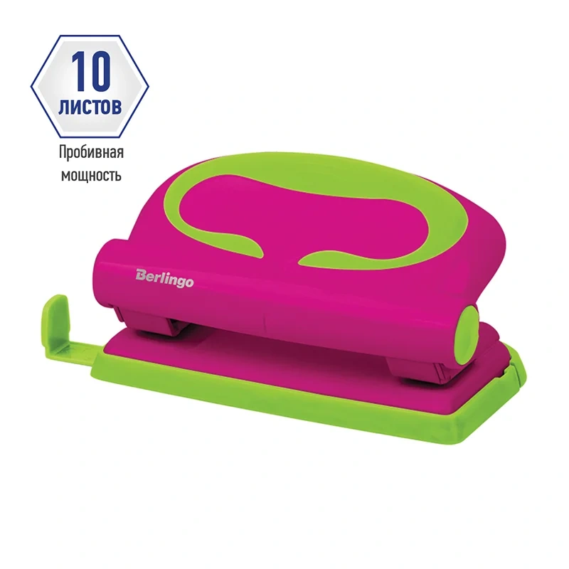 Дырокол Berlingo 'Fuze' 10л., пластиковый, розовый, с линейкой