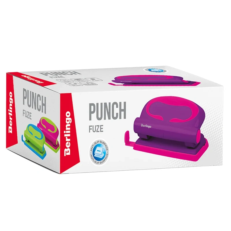 Дырокол Berlingo 'Fuze' 20л., пластиковый, фиолетовый, с линейкой