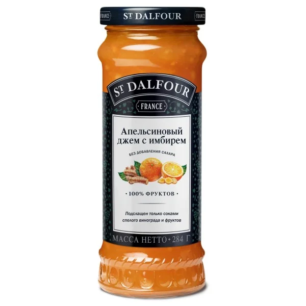 Джем St Dalfour апельсин-имбирь, 284г предназначен для любителей сладкого. Продукт обладает сбалансированным, приятным вкусом. В составе содержатся только натуральные компоненты. Благодаря минимальному количеству быстрых углеводов, отсутствию красителей и консервантов джем придется по душе тем, кто придерживается здорового образа жизни или сидит на диете. Фрукты в продукте мелко перетерты, поэтому его легко намазать на хлеб, украсить тарталетку или использовать в качестве прослойки для коржей на торт. Продукт упакован в стеклянную банку с завинчивающейся крышку. При первом открывании она должна издать характерный щелчок.