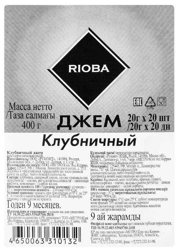 RIOBA Концентрат для безалкогольных напитков клубника, 1кг
