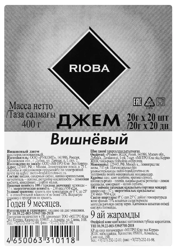RIOBA Концентрат для безалкогольных напитков маракуйя, 1кг