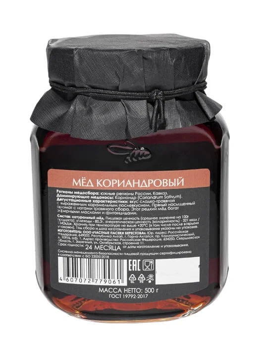 Мед Берестов А.С. натуральный Кориандровый Black edition, 500г