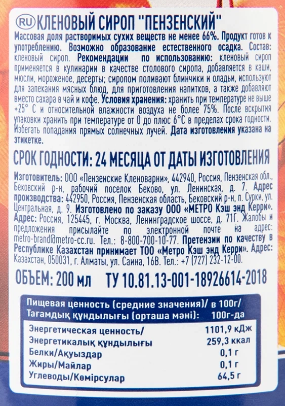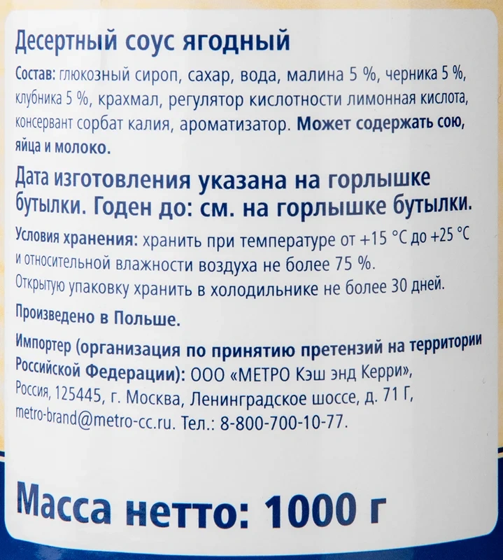 Сироп Metro Chef десертный со вкусом малины, 1кг