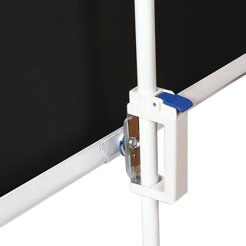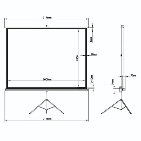 Экран с диагональю 100' и размером 150х200 см имеет черную кайму для улучшения восприятия яркости изображения. Коэффициент отражения составляет 1.0, угол обзора - 160°. Устойчивый штатив круглого сечения для надежности конструкции. Телескопическая штанга и кнопка регулировки для настройки высоты. Удобная ручка для переноски. Возможность легкого отсоединения штатива от корпуса экрана. Наконечники ножек предотвращают скольжение экрана и повреждение пола. Также подходит для крепления к потолку.