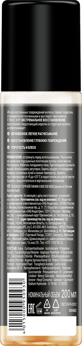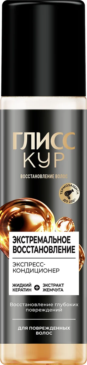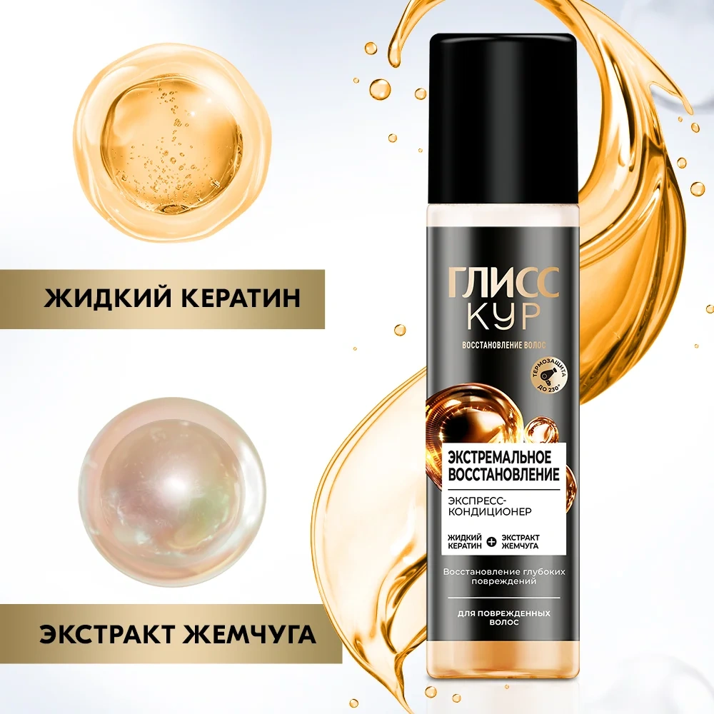 Из-за постоянных повреждений волосы теряют кератин, становятся истонченными и выглядят неухоженно. Глисс Кур Экстремальное восстановление восполняет недостающий кератин в структуре волоса.