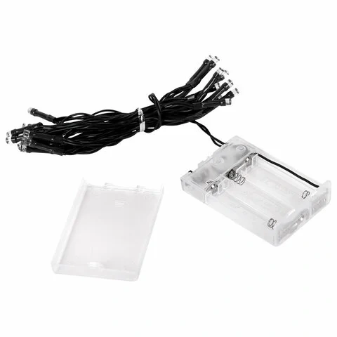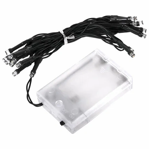 - электрогирлянда светодиодная на батарейках (АА, 2 штуки, батарейки не входят в комплект) длиной 2 м с 20-ю светодиодными лампами, без контроллера.