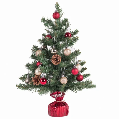 Ель искусственная декоративная, 50 см, зеленая, с гирляндой и игрушками, ЗОЛОТАЯ СКАЗКА, 591316