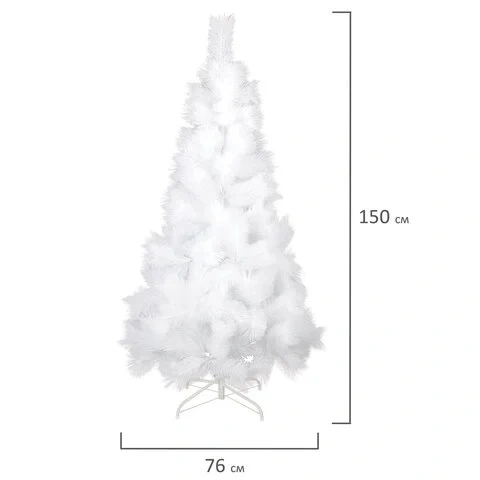 Ель искусственная напольная представляет собой конструкцию из металлического каркаса и закрепляемых на нем ветвей. Материал хвои - полиэтилентерефталат. Цвет хвои - белый. Высота ели - 150 см. Диаметр нижнего яруса - 76 см. Количество веток - 112.