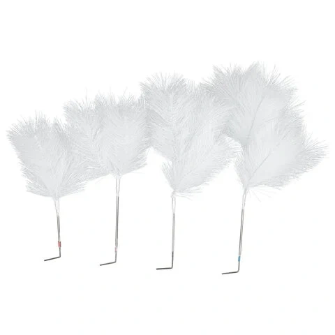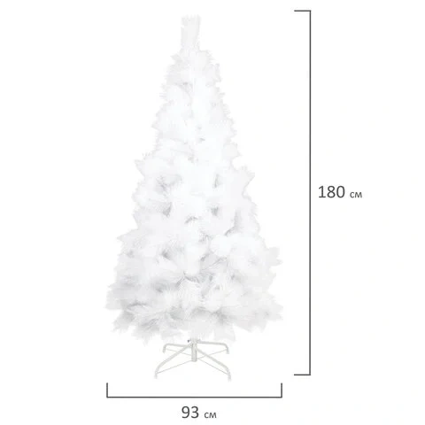 Ель искусственная напольная представляет собой конструкцию из металлического каркаса и закрепляемых на нем ветвей. Материал хвои - полиэтилентерефталат. Цвет хвои - белый. Высота ели - 180 см. Диаметр нижнего яруса - 93 см. Количество веток - 184.