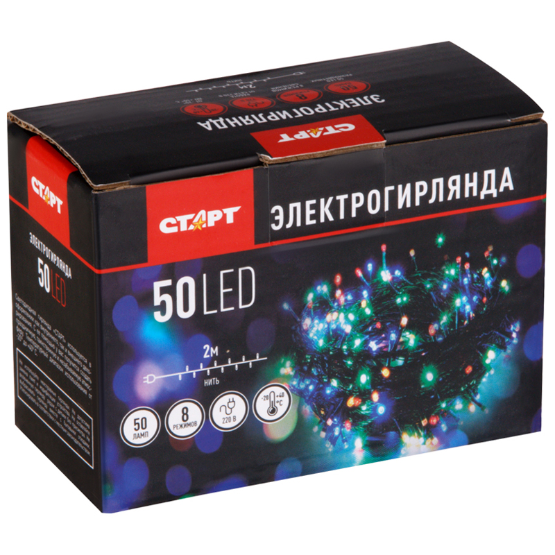 Электрогирлянда Старт 'Нить', 50 ламп, мультиколор, 8 режимов, 2м