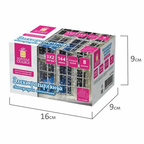 Гирлянда светодиодная Золотая Сказка Штора 3х2м, 144 LED, холодный белый свет