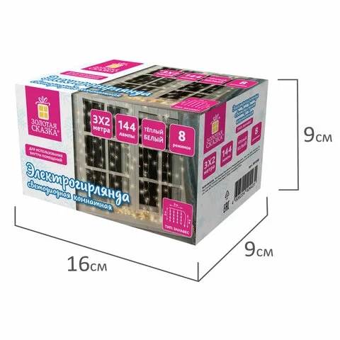 Гирлянда светодиодная Золотая Сказка Штора 3х2м, 144 LED, теплый белый свет