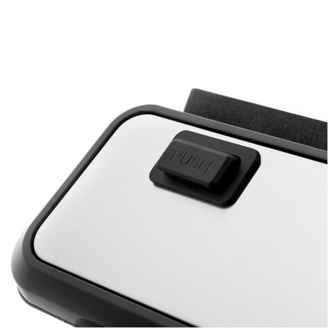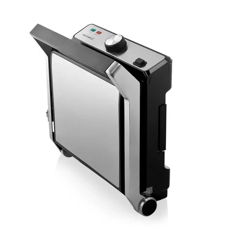 Корпус из высокопрочного пластика, декорированный нержавеющей сталью, придаёт грилю стильный вид и обеспечивает долговечность. Механический регулятор температуры позволяет точно контролировать процесс приготовления, а вертикальное хранение делает устройство компактным и удобным для размещения на кухне.