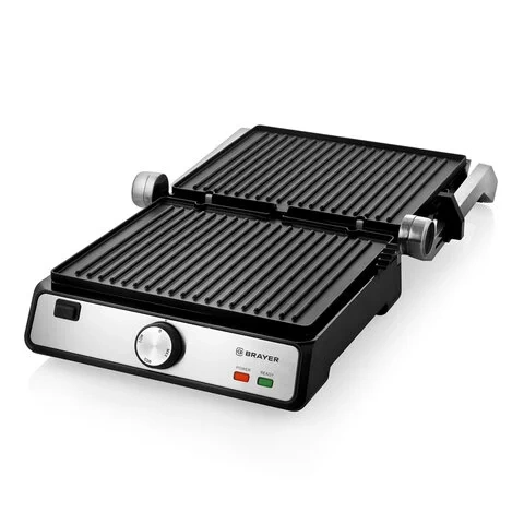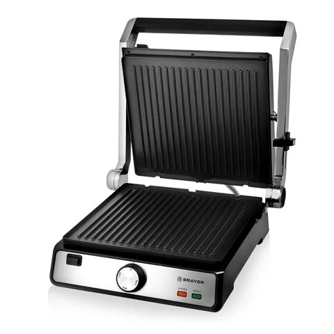 Электрогриль BRAYER BR2002, 2000 Вт, съемные панели, регулировка температуры, серебро/черный