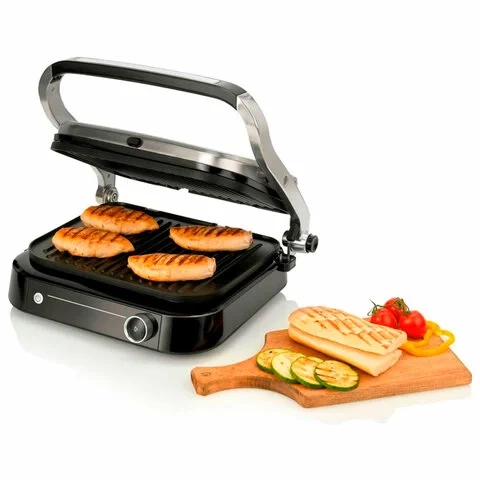 Электрогриль GORENJE GCG2100S, 2100 Вт, съемные панели, регулировка температуры, серебро/черный