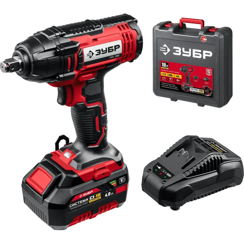Гайковерт аккумуляторный ударный ЗУБР 18В, 1АКБ (4.0Ач) (ГУЛ-255-41)