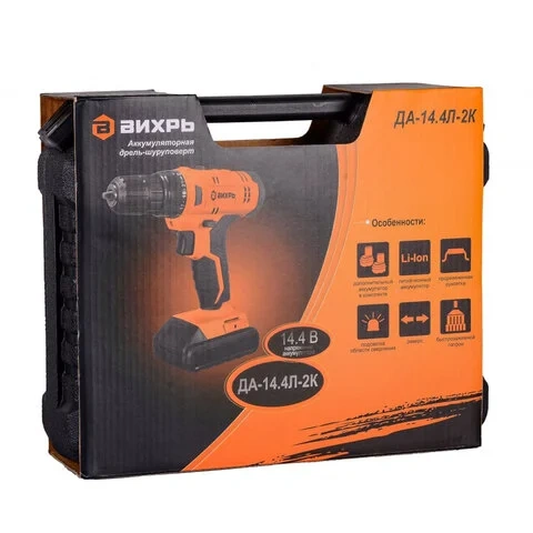 Дрель-шуруповерт аккумуляторная Вихрь ДА-14,4Л-2К 14.4В, 2 аккуммулятора, 2Ач