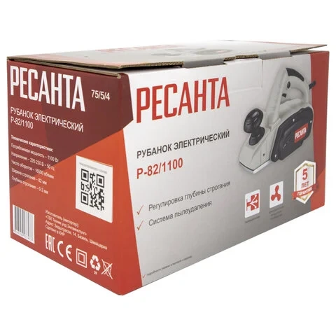 Электрорубанок Ресанта 75/5/4 1100Вт, 16000 об/мин, глубина 3мм