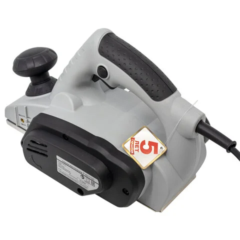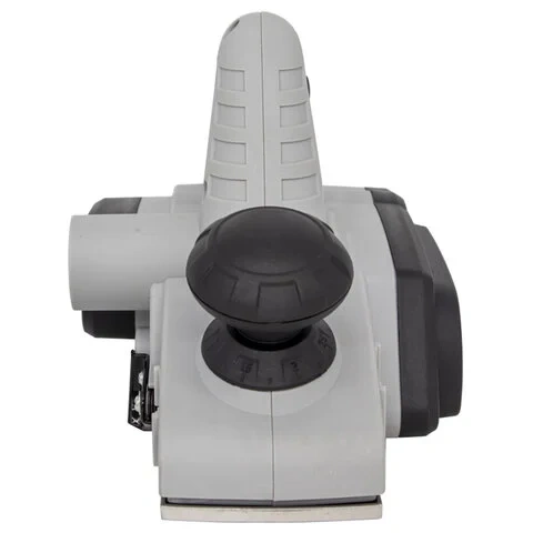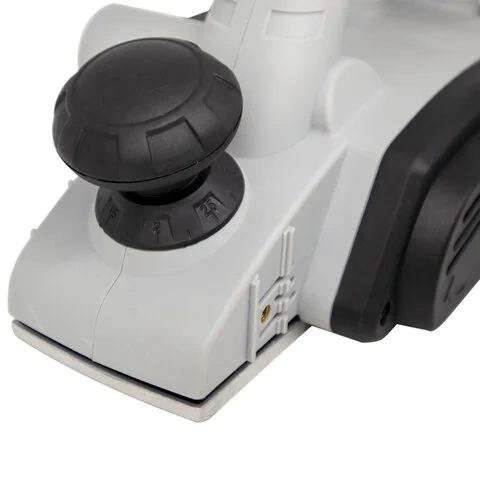 Рукоятка регулировки глубины обработки до 3 мм позволяет более эффективно обрабатывать древесину. Кнопка блокировки от случайного включения защищает от случайных травм при работе с инструментом. В конструкции рубанка предусмотрены отверстия для крепления на площадку. С помощью широкой рукоятки можно крепко удерживать инструмент, что делает работу более продуктивной и безопасной.