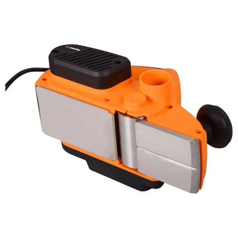 Рубанок обеспечивает направленный выброс стружки и плавное регулирование глубины строгания. Для поддержания рабочего места в чистоте инструмент оснащен патрубком для отвода пыли.