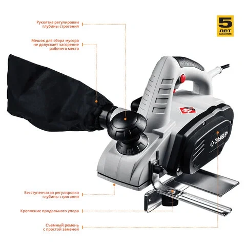 Электрорубанок Зубр ЗР-750-82 750Вт, 16000 об/мин, глубина 2мм