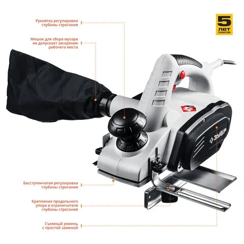 Электрорубанок Зубр ЗР-950-82 950Вт, 15000 об/мин, глубина 3мм