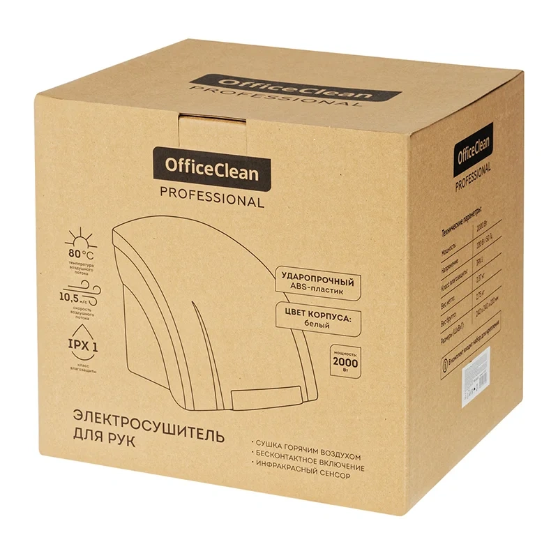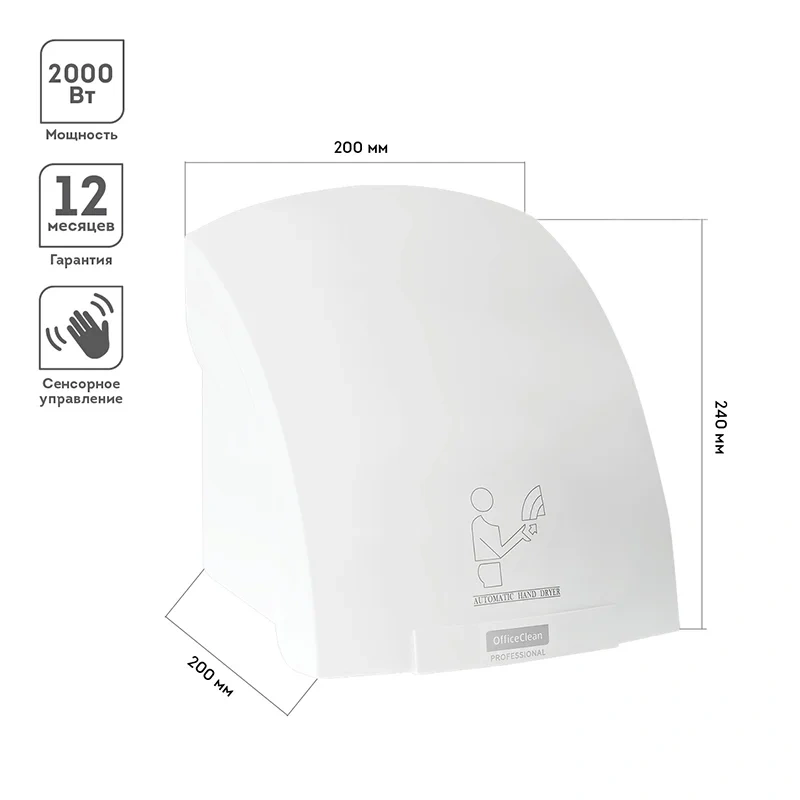 Электросушитель для рук OfficeClean Professional, 2000Вт, сенсорный, белый, ABS-пластик